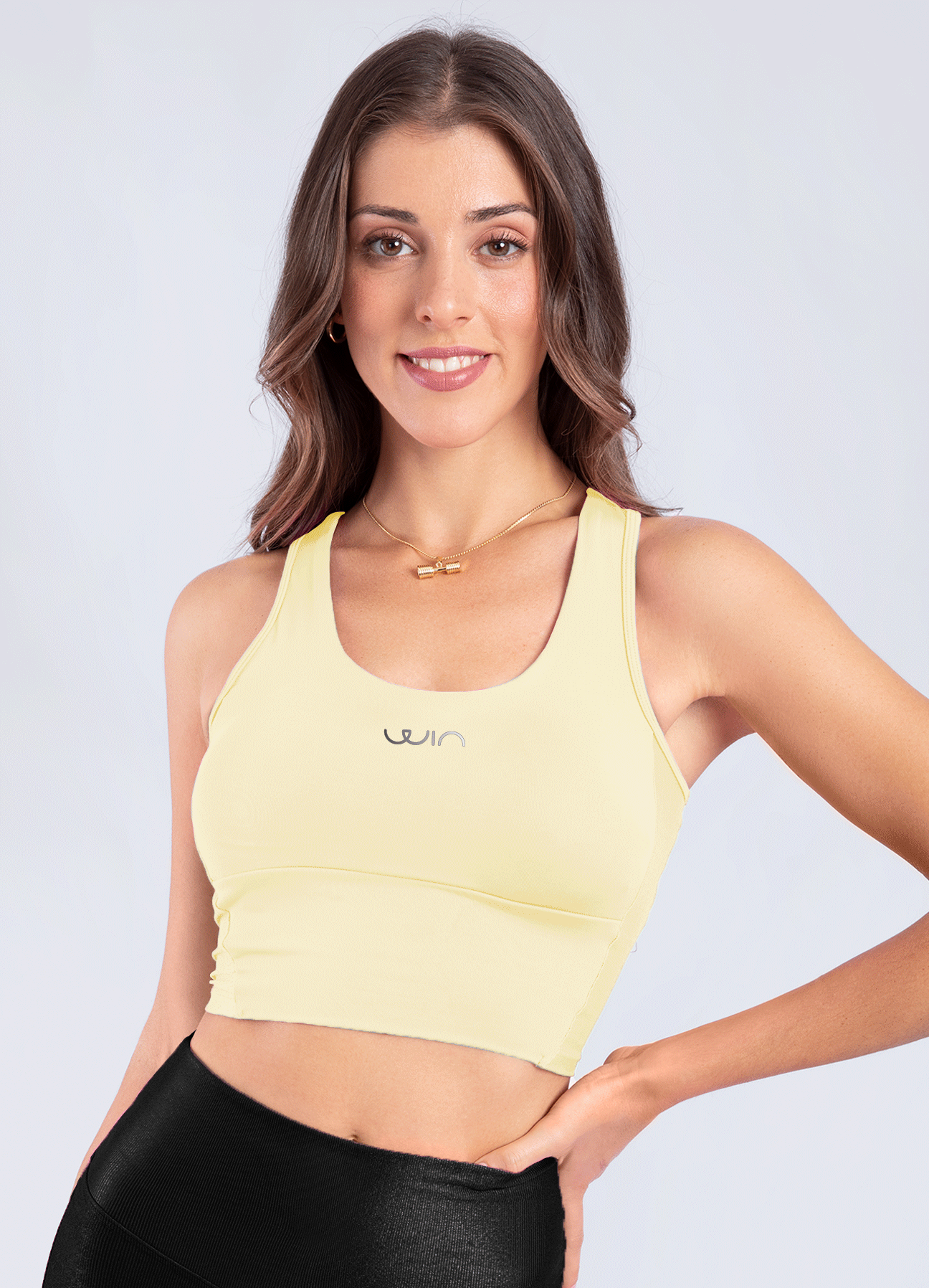 Top de Smart Emana con escote redondo, espalda olímpica con escote abierto y cortes ergonomicos. Transfer WIN. Máximo soporte y comodidad para entrenar con estilo.