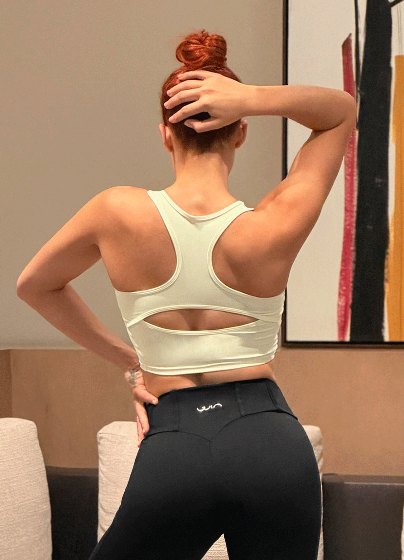 Top de Smart Emana con escote redondo, espalda olímpica con escote abierto y cortes ergonomicos. Transfer WIN. Máximo soporte y comodidad para entrenar con estilo.